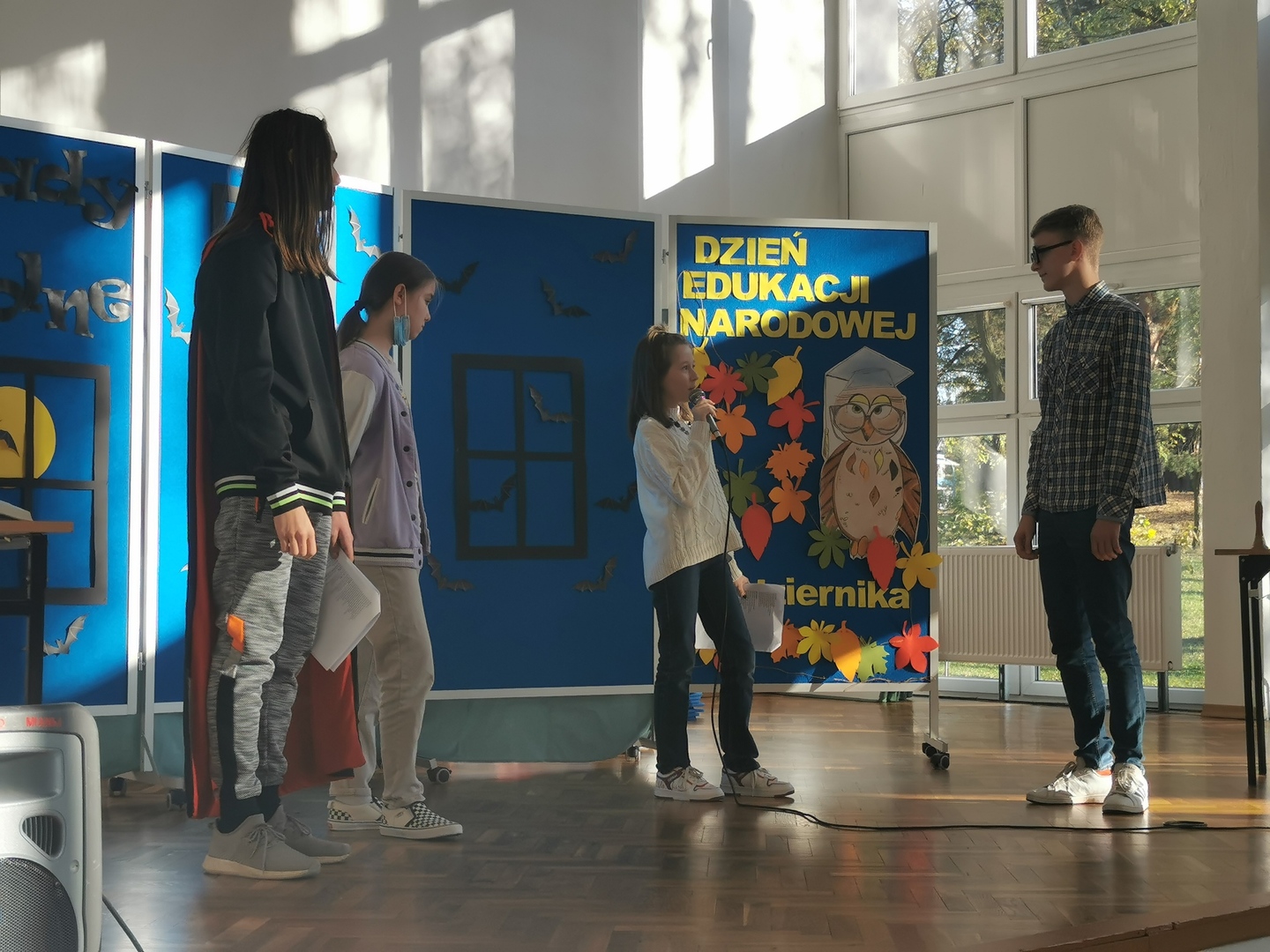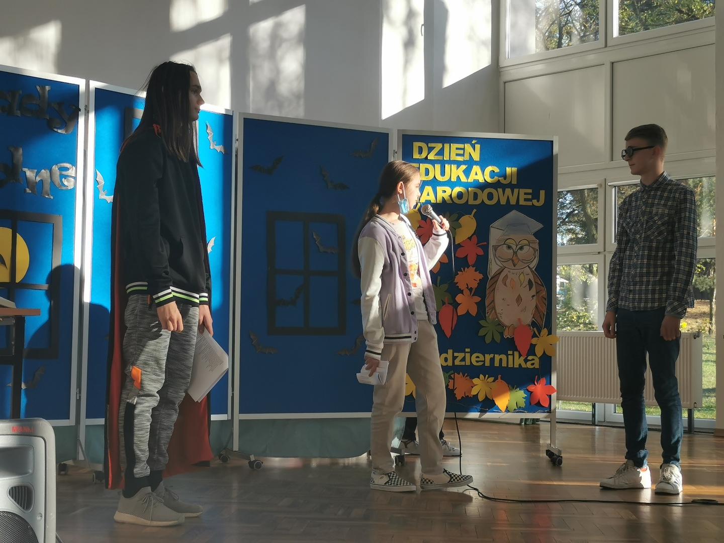 Dnia 14 października, jak co roku, obchodzimy w całej Polsce Dzień Edukacji Narodowej inaczej zwany Dniem Nauczyciela. Jest to święto wszystkich pracowników szkoły oraz uczniów. W naszej szkole Dzień Edukacji Narodowej obchodziliśmy w czwartek 13 października. W tym dniu uczniowie klas 1-8 wystąpili w przedstawieniu pt. „Dziady Szkolne" przygotowanym przez Panią Agatę Piątek oraz Barbarę Cenkałę.