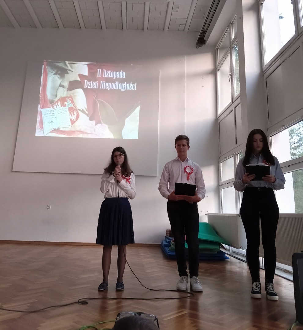 10 listopada odbyła się akademia z okazji Narodowego Święta Niepodległości. Uczniowie starszych klas wystąpili na scenie upamiętniając odzyskanie niepodległości przez Polskę w 1918 roku. Cała szkoła zaśpiewała wspólnie hymn Państwowy oraz pieśni wojskowe.