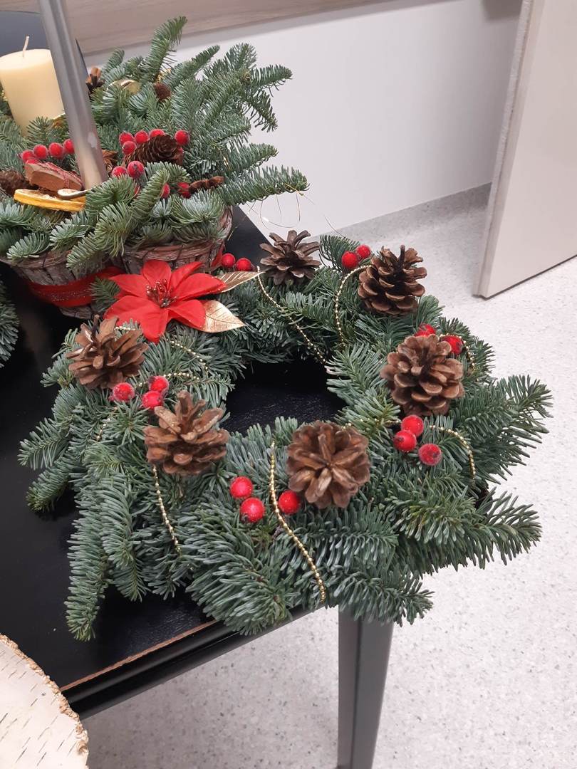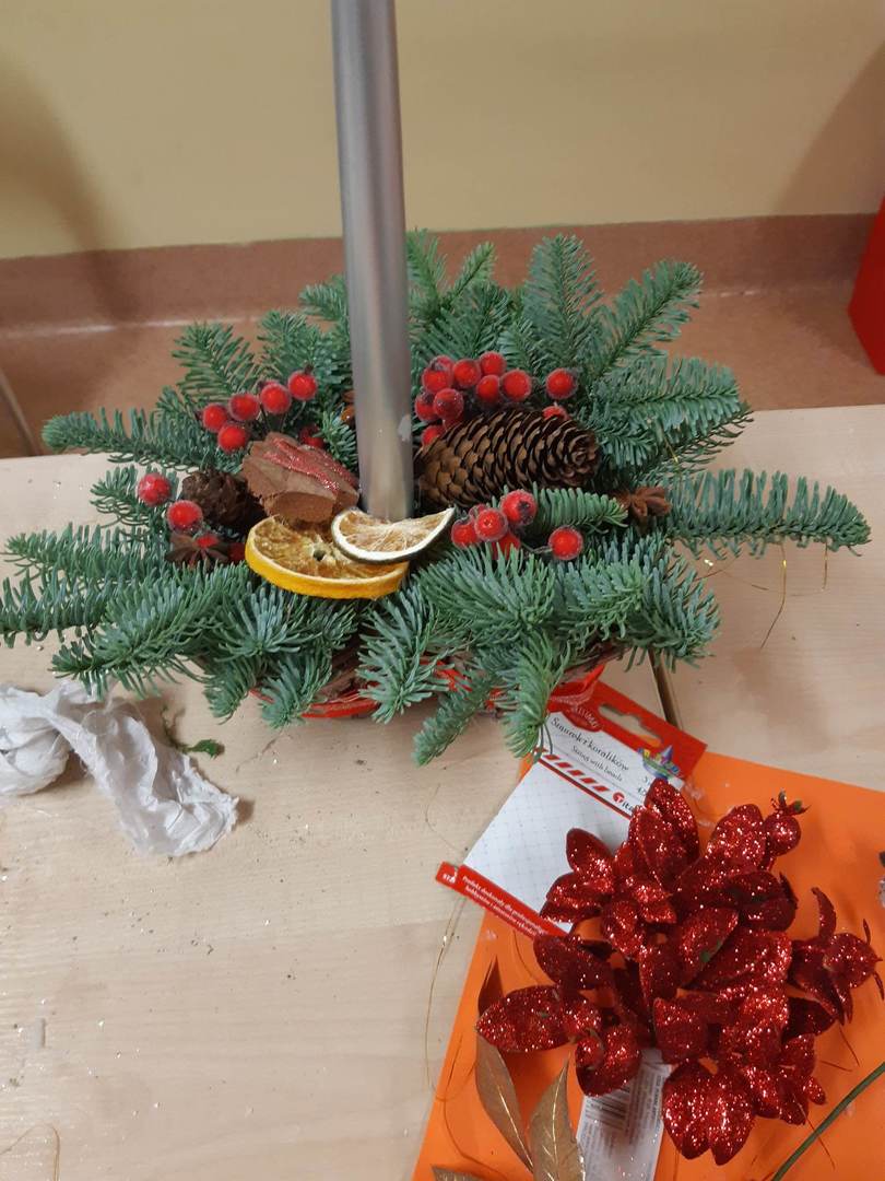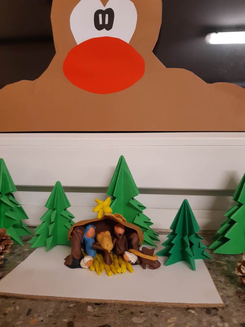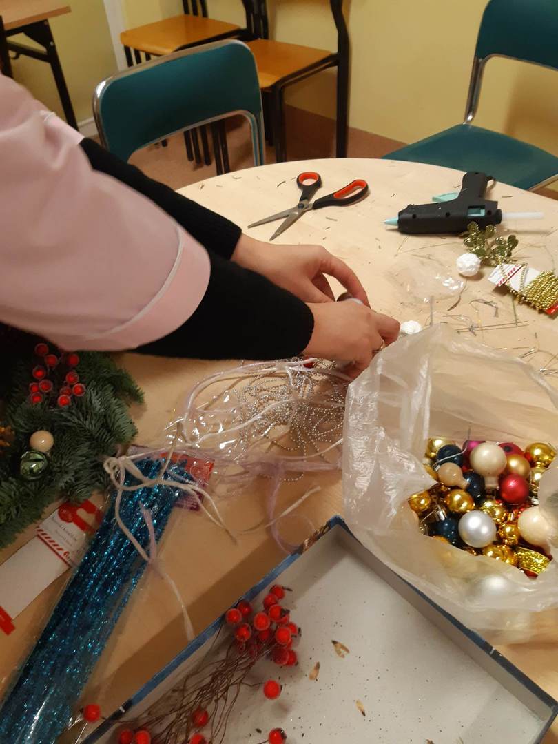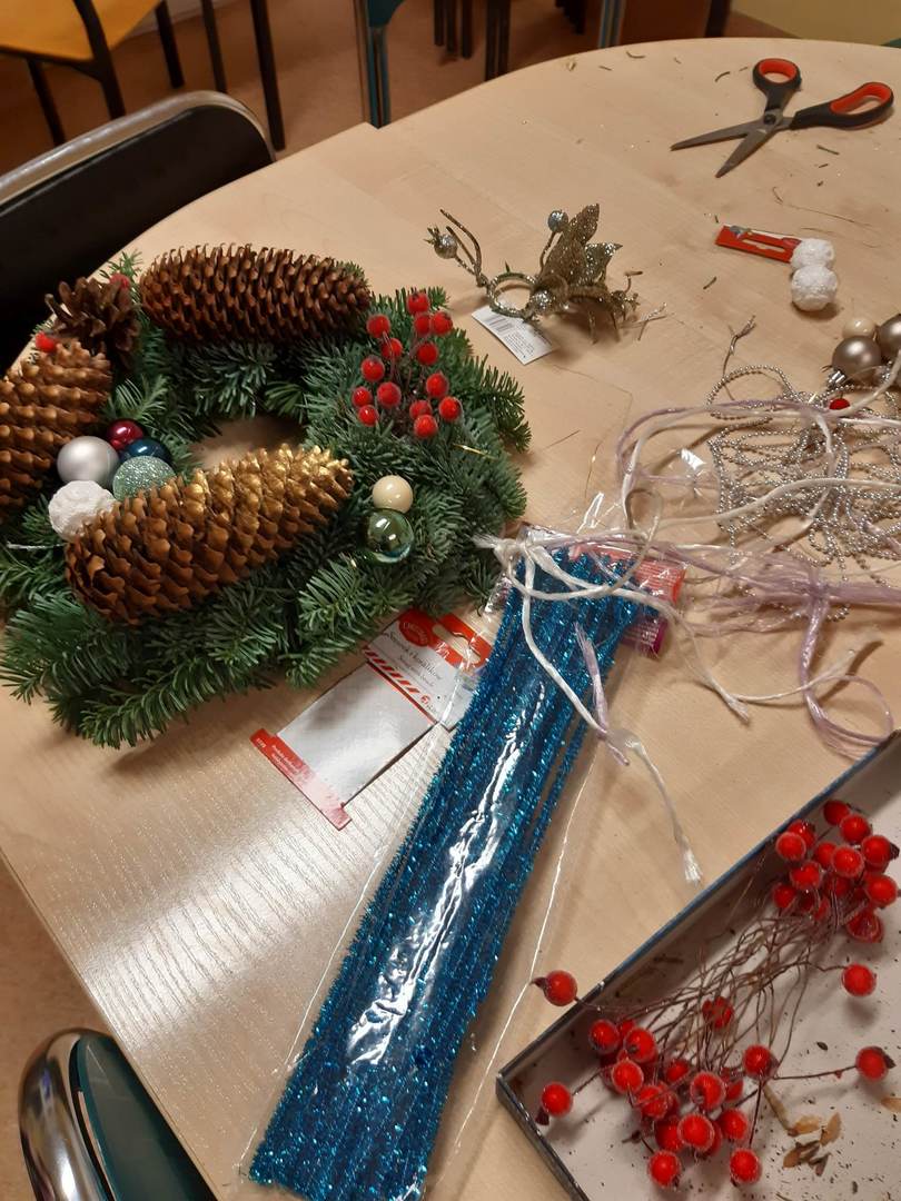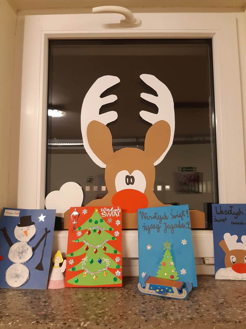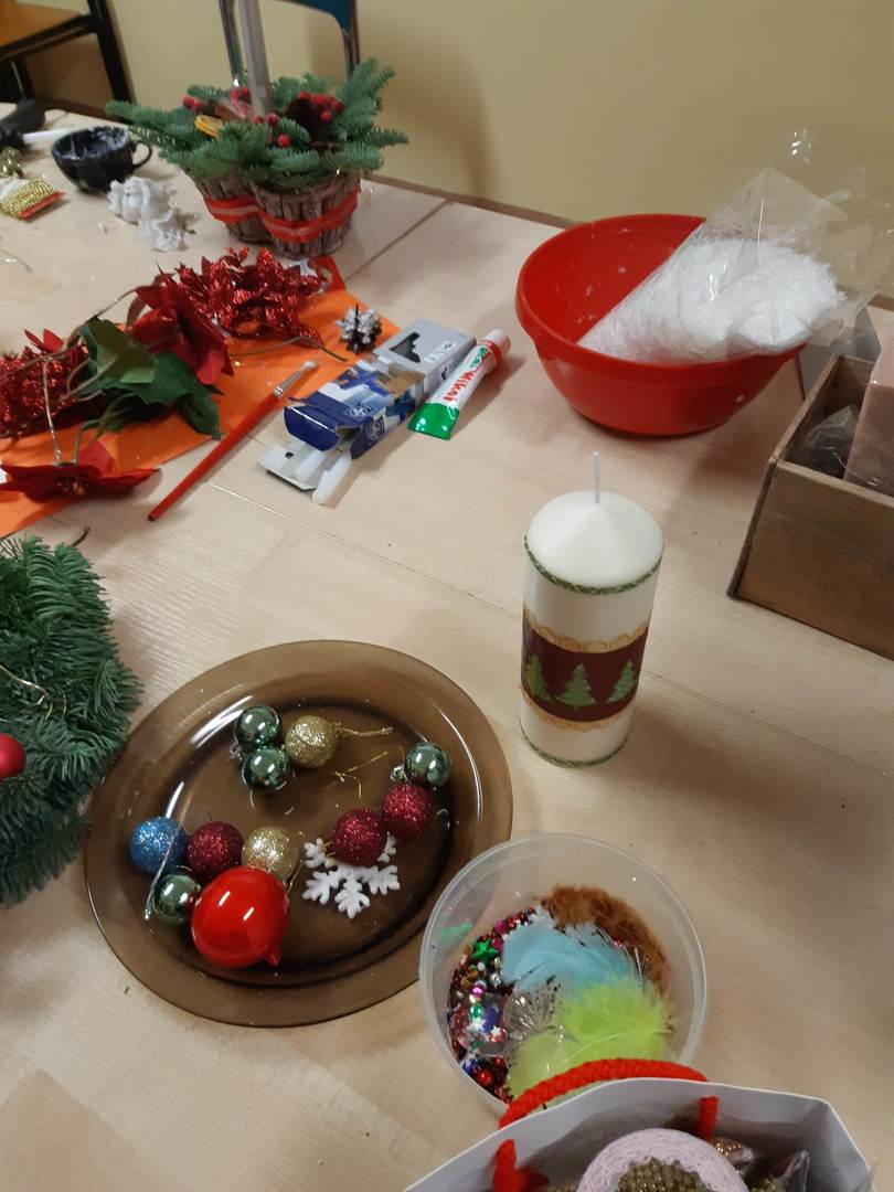 * wystawa prac plastycznych (z plasteliny, papieru, kartonu): szopki, choinki, renifery, śnieżynki itp.;