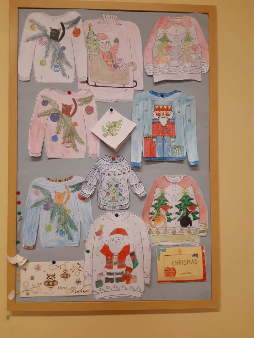 * gazetki pt.: - ,,Stare i nowe karty świąteczne", - ,,Świąteczny sweter";