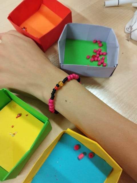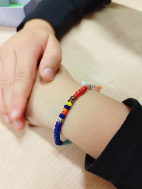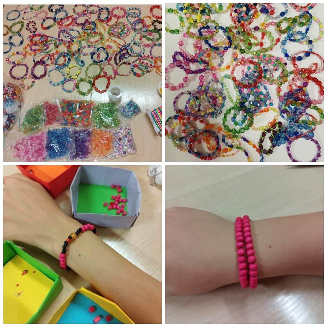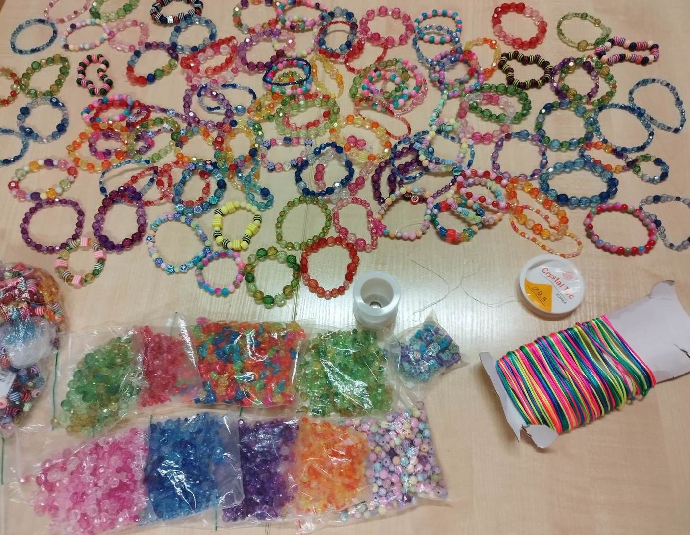* upominki - bransoletki wykonane z koralików dla pracowników Zespołu Szkół i personelu szpitala;