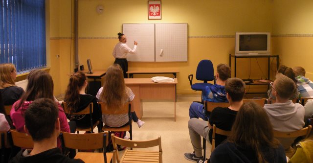 W dniu 18 lutego 2016r. naszą szkołę odwiedziła Pani Kinga Gajewska - Posłanka na Sejm RP, która w ramach lekcji wiedzy o społeczeństwie przybliżyła uczniom kwestie dotyczące funkcjonowania państwa, prawa wyborczego regulującego sposób przeprowadzenia wyborów, a w szczególności zasady wyłaniania ich zwycięzców i podziału mandatów.