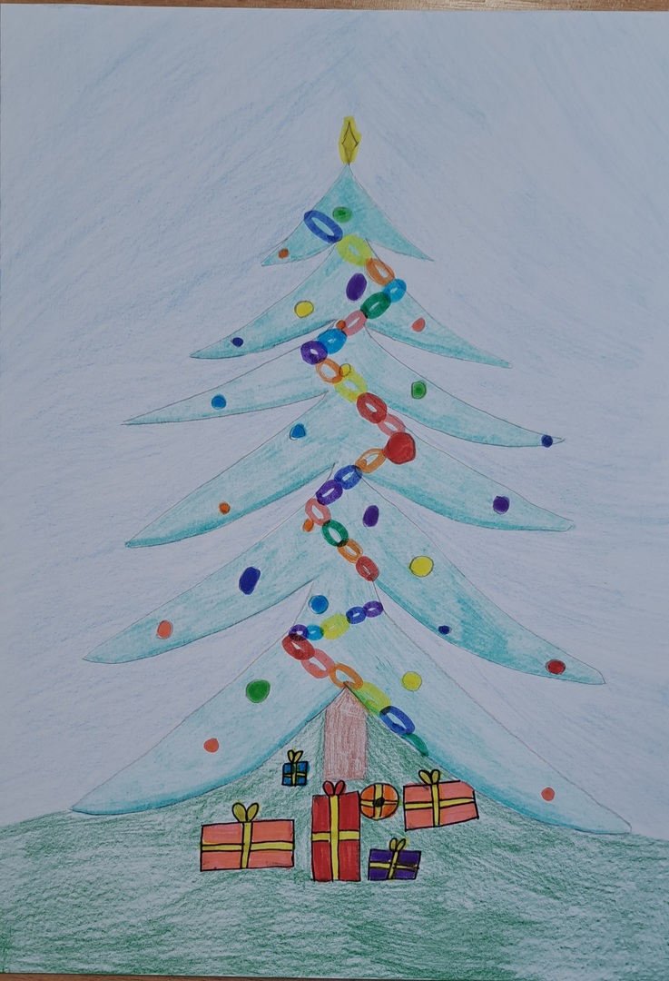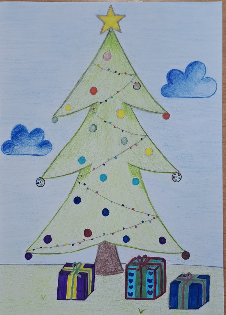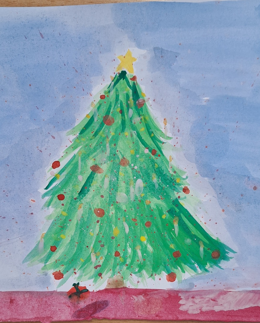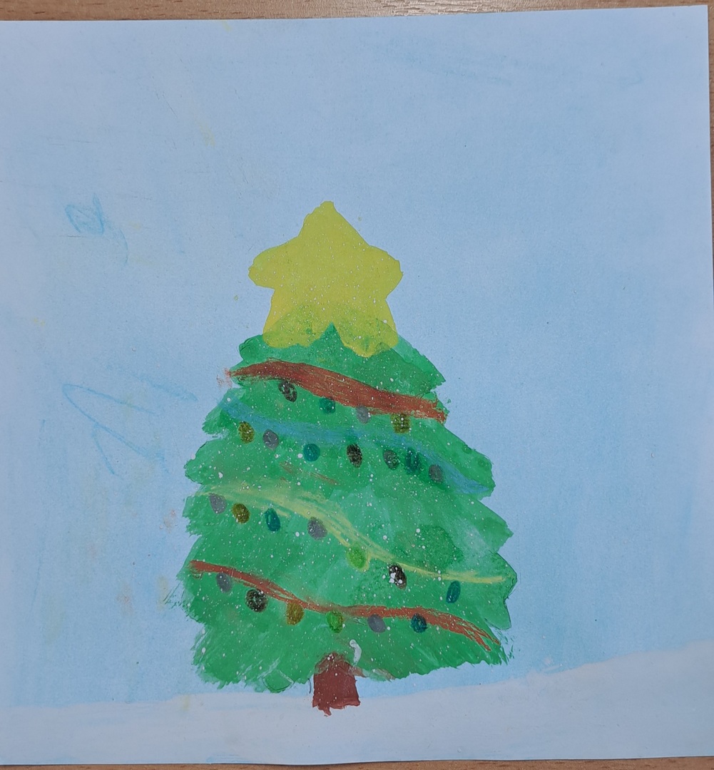 Wykonaj na kartce A4 pracę plastyczną przedstawiającą choinkę – technika dowolna (kolaż, farby, kredki, mazaki…)