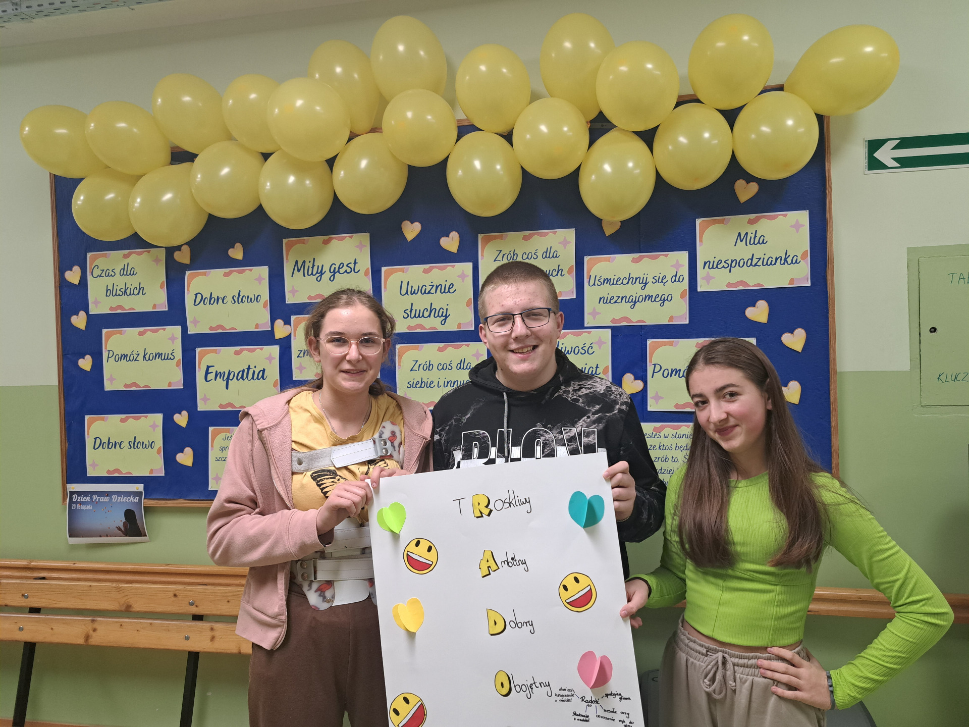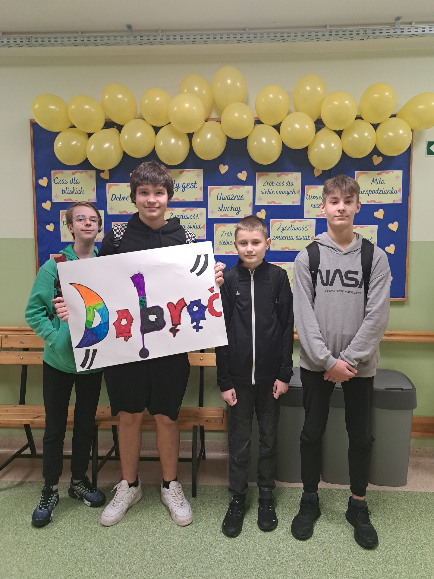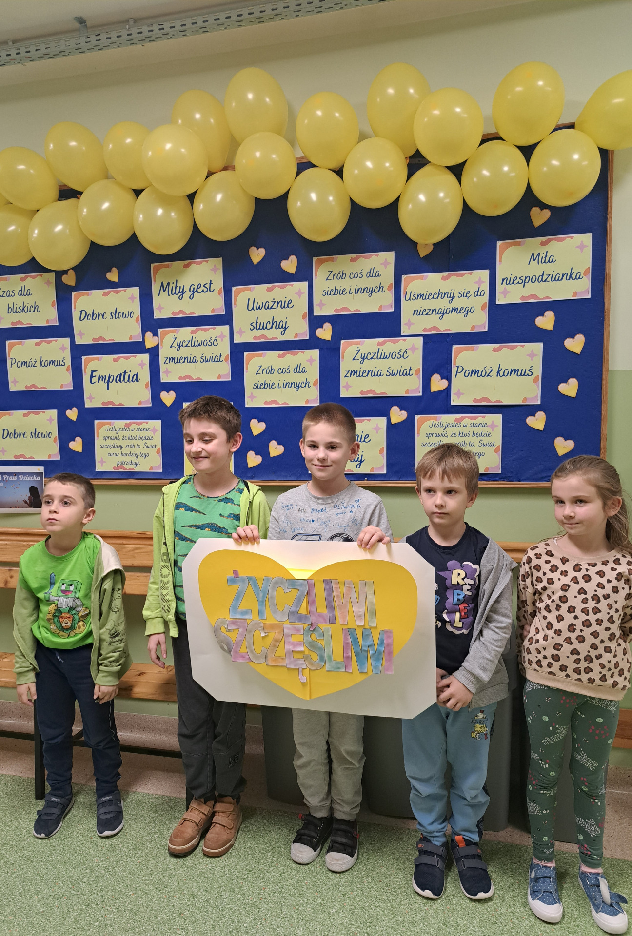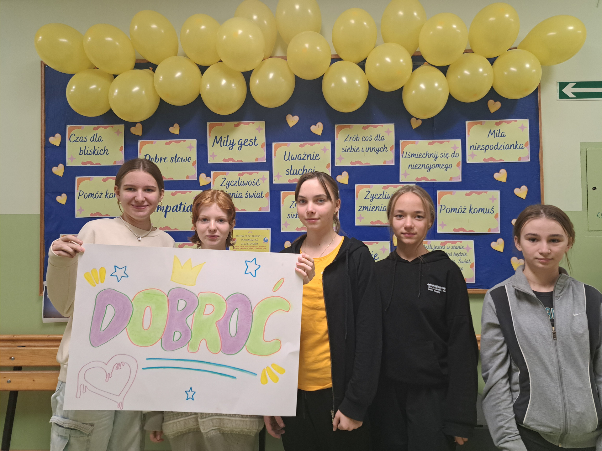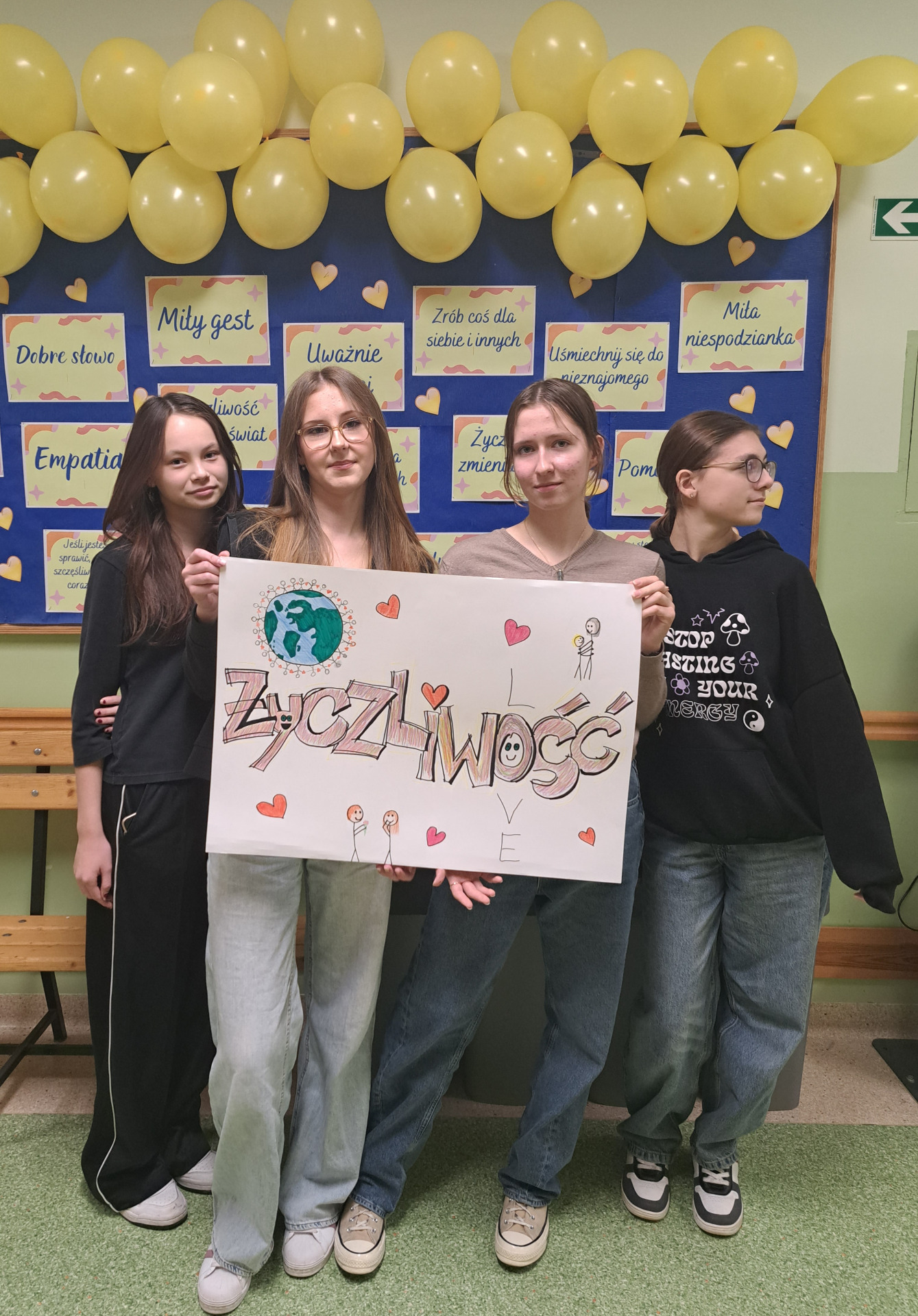 Przekonaliśmy się o tym sami, organizując obchody tego dnia w naszej szkole. Chętne osoby ubrały się na żółto i wymieniały się serdecznościami. Chłopcy z liceum wcielili się w przedstawicieli Poczty Życzliwości i mieli dla wszystkich listy pełne miłych słów. Zadaniem każdej klasy było wykonanie plakatu. Uczniowie na początku zajęć losowali „życzliwe słowo”, które mieli napisać na dużym arkuszu inspirując się graffiti. Powstały wyjątkowe prace, ich autorzy zwracali uwagę na kolorystykę, kształty liter i dodatkowe elementy, które dodały ich projektom charakteru – wszystkie zdobią nasz korytarz szkolny.