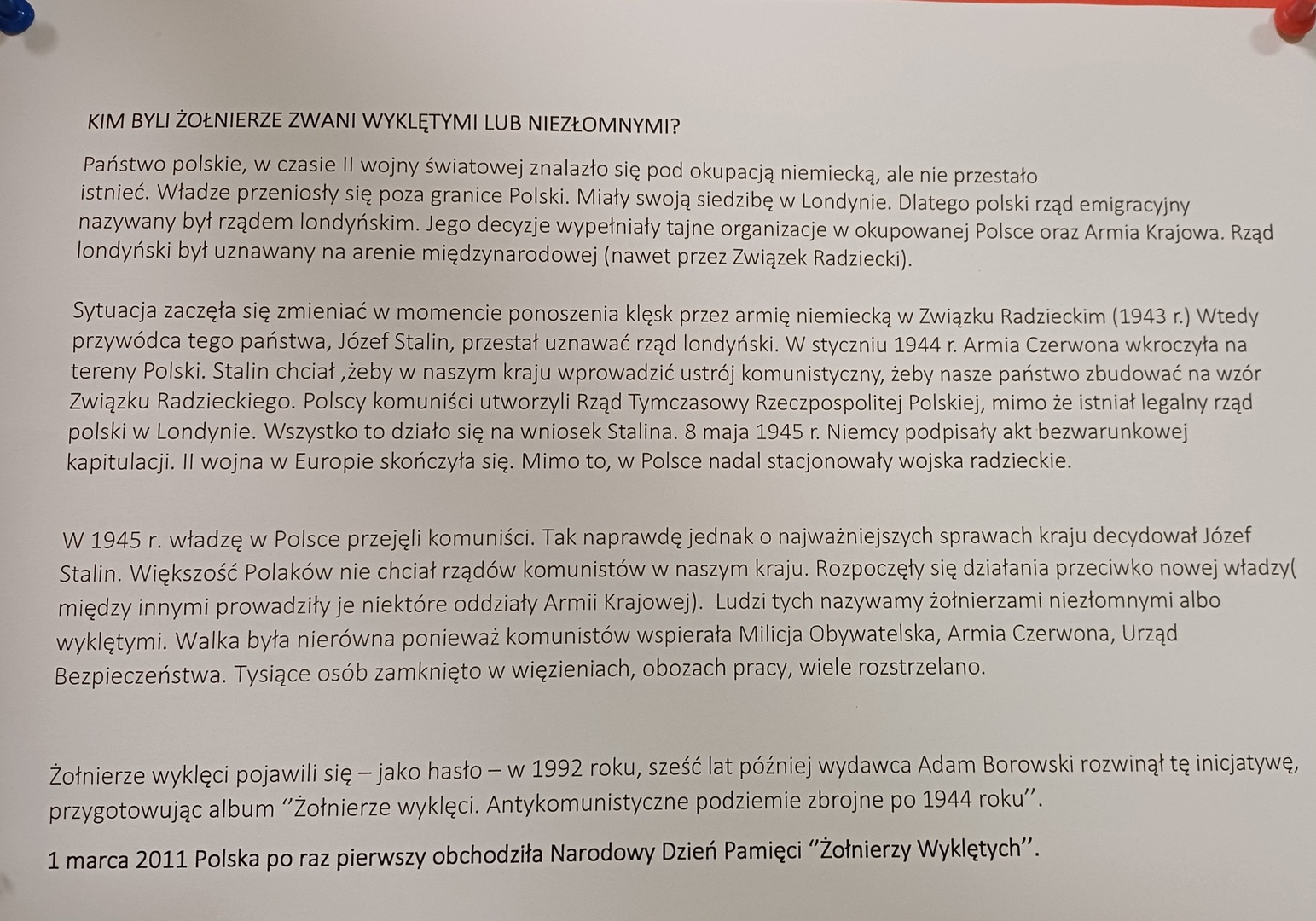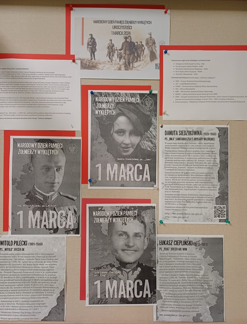 Chcąc przybliżyć wydarzenia i bohaterów tamtych dni młodzież z oddziału XIII B i XIII C wykonała okolicznościową gazetkę. Pełen symboli plakat wykonała Amelia Zonik.