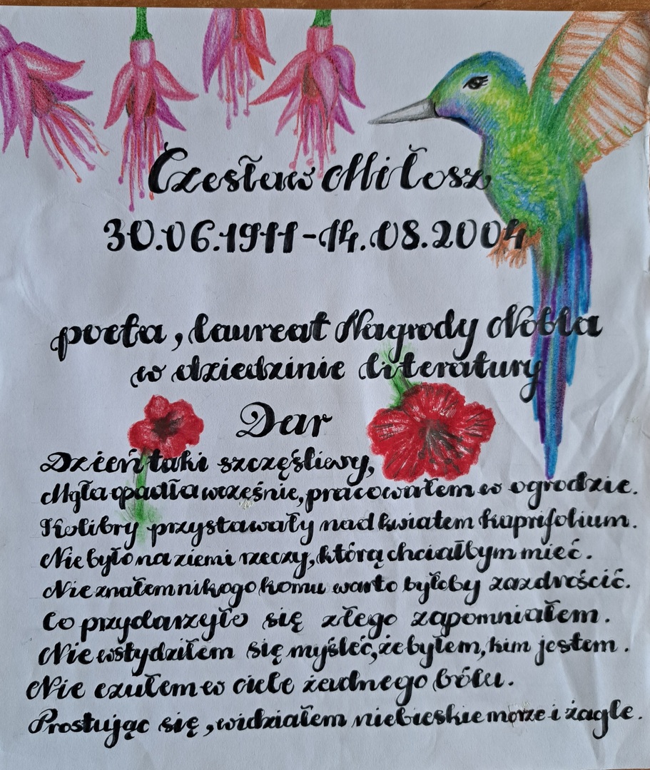 3. Konkurs jest adresowany do uczniów szkoły podstawowej i liceum. Przedmiotem konkursu jest wykaligrafowanie jednego z zaproponowanych tekstów (teksty