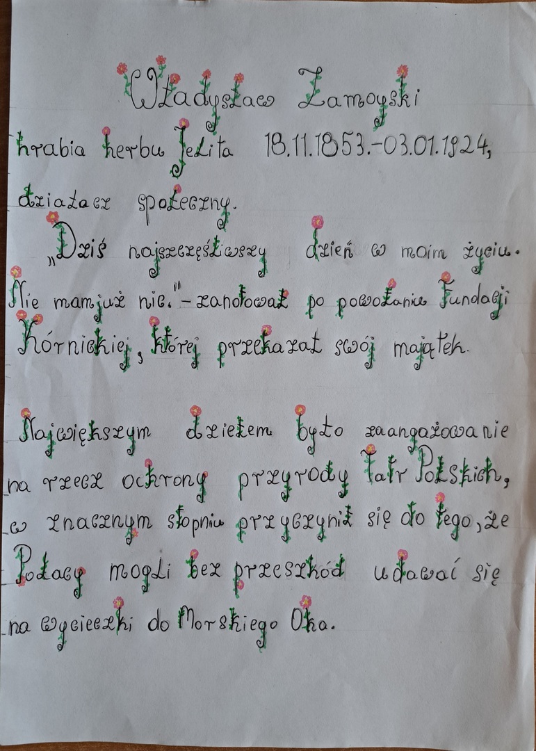 5. Praca powinna być wykonana najlepiej wiecznym piórem (kolor atramentu i szerokość stalówki dowolna) długopisem lub ołówkiem na gładkim papierze formatu A4.