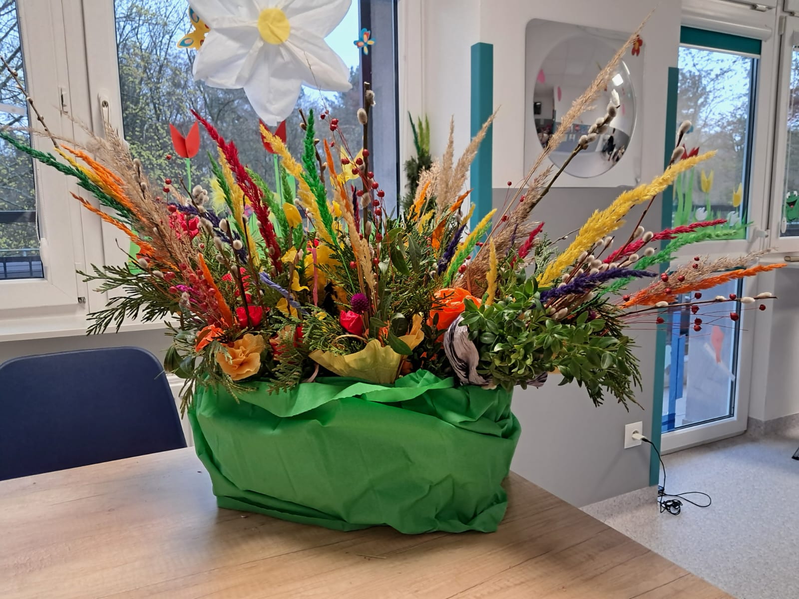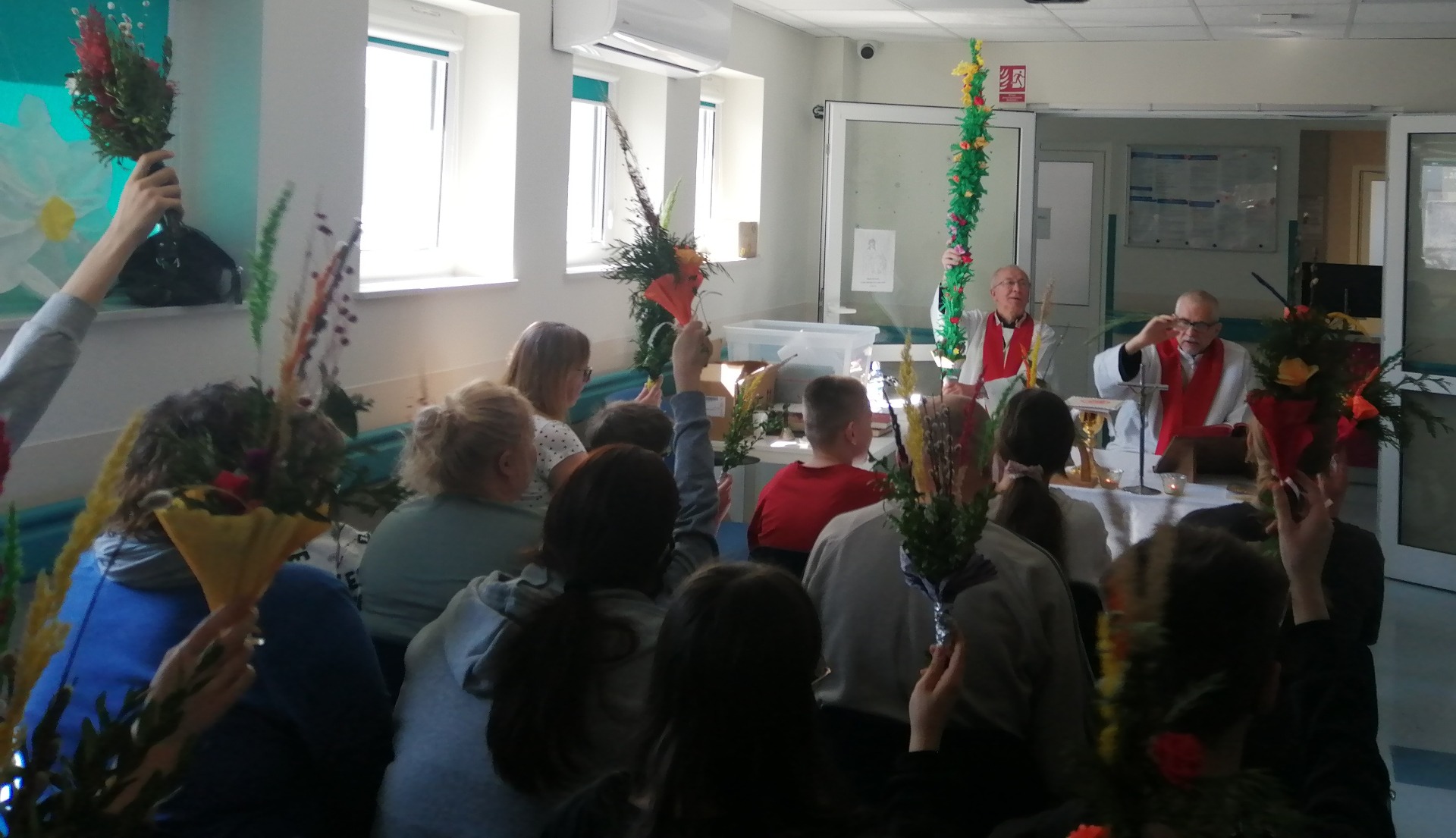 Piątkowe popołudnie upłynęło pod znakiem radosnej twórczości. Pod opieką wychowawców wychowankowie wraz z rodzicami przygotowywali palmy wielkanocne. Nie brakowało twórczych improwizacji i oryginalnych pomysłów, dzięki czemu każda palma zyskiwała swój niepowtarzalny charakter. Wspólne tworzenie palm stało się nie tylko okazją do rozwoju umiejętności twórczychi kultywowania pięknej polskiej tradycji, ale również zacieśniania więzi.