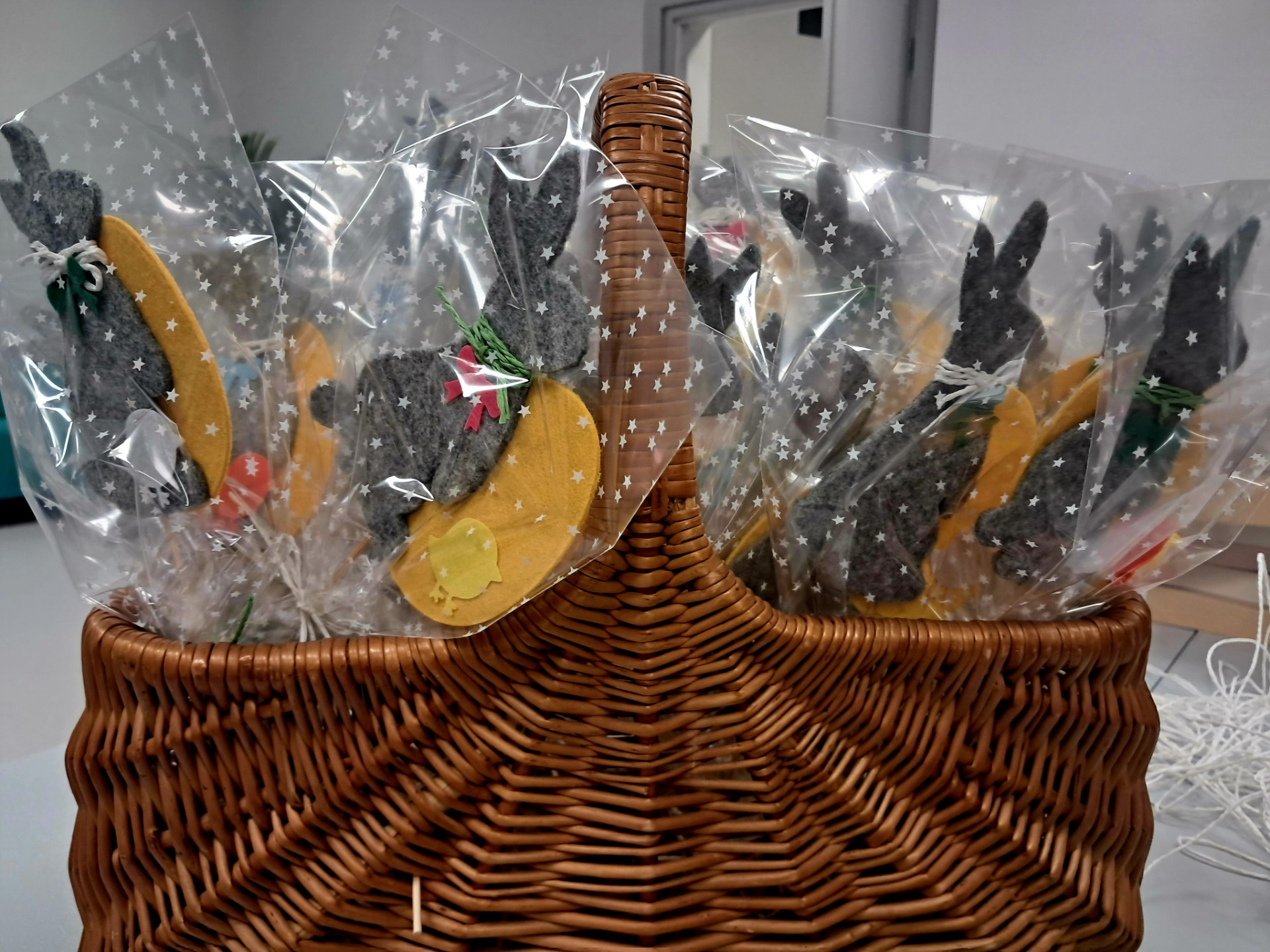 W radosnej i twórczej atmosferze przebiegały przedświąteczne zajęcia pozalekcyjne naszych wychowanków. Uczniowie z zapałem zaangażowali się w przygotowania do zbliżających się świąt Wielkanocnych oraz uroczystości 50-lecia Mazowieckiego Centrum Rehabilitacji przy ul. Długiej w Konstancinie-Jeziornie. Pierwszym zadaniem było stworzenie świątecznych upominków dla naszej kadry nauczycielskiej i administracyjnej. Z filcu, przy użyciu wcześniej przygotowanych szablonów, uczniowie z wychowawcami zręcznie wycinali kształty świątecznych zajączków, jajek i kokard. Następnie, z precyzją i starannością, sklejali poszczególne elementy, ożywiając sympatyczne figurki. Każdy zajączek był inny, a ozdobiony drobnymi detalami, stał się wyrazem wdzięczności i świątecznych życzeń.