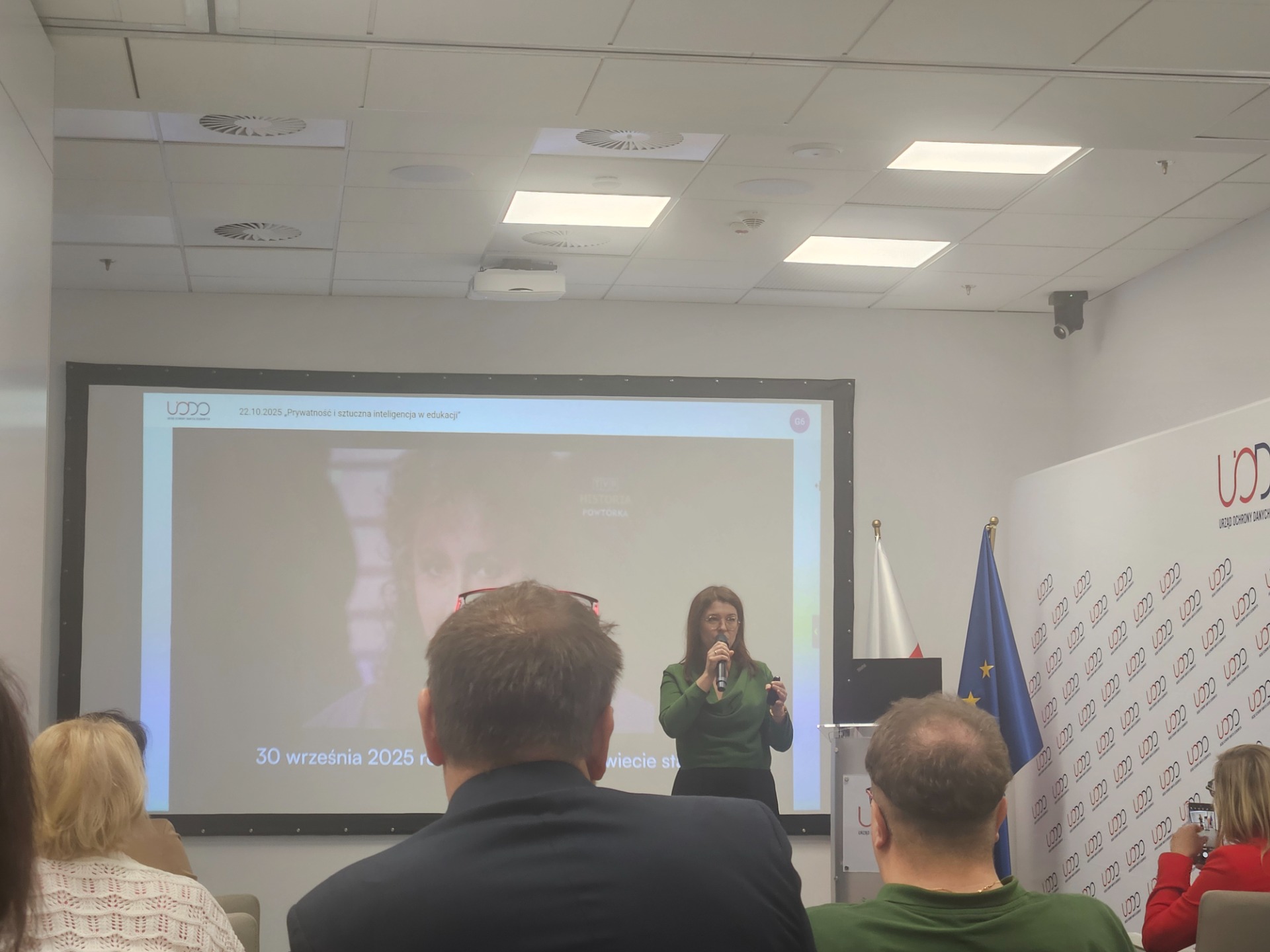 Tematem wiodącym nowej edycji będzie ochrona danych osobowych w kontekście rozwoju nowych technologii, ze szczególnym uwzględnieniem sztucznej inteligencji. Chcemy wspólnie z nauczycielami i uczniami przyjrzeć się temu, jak świadomie i odpowiedzialnie korzystać z narzędzi opartych na AI, jak chronić swoje dane – w tym wizerunek, czy informacje wrażliwe – oraz jak świadomie wybierać aplikacje i rozwiązania cyfrowe. Koordynator programu, pani Małgorzata Przybysz, wzięła udział w konferencji wprowadzajacej program w tym roku szkolnym.