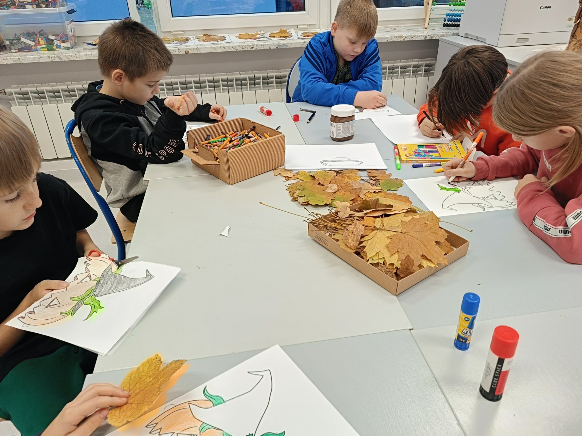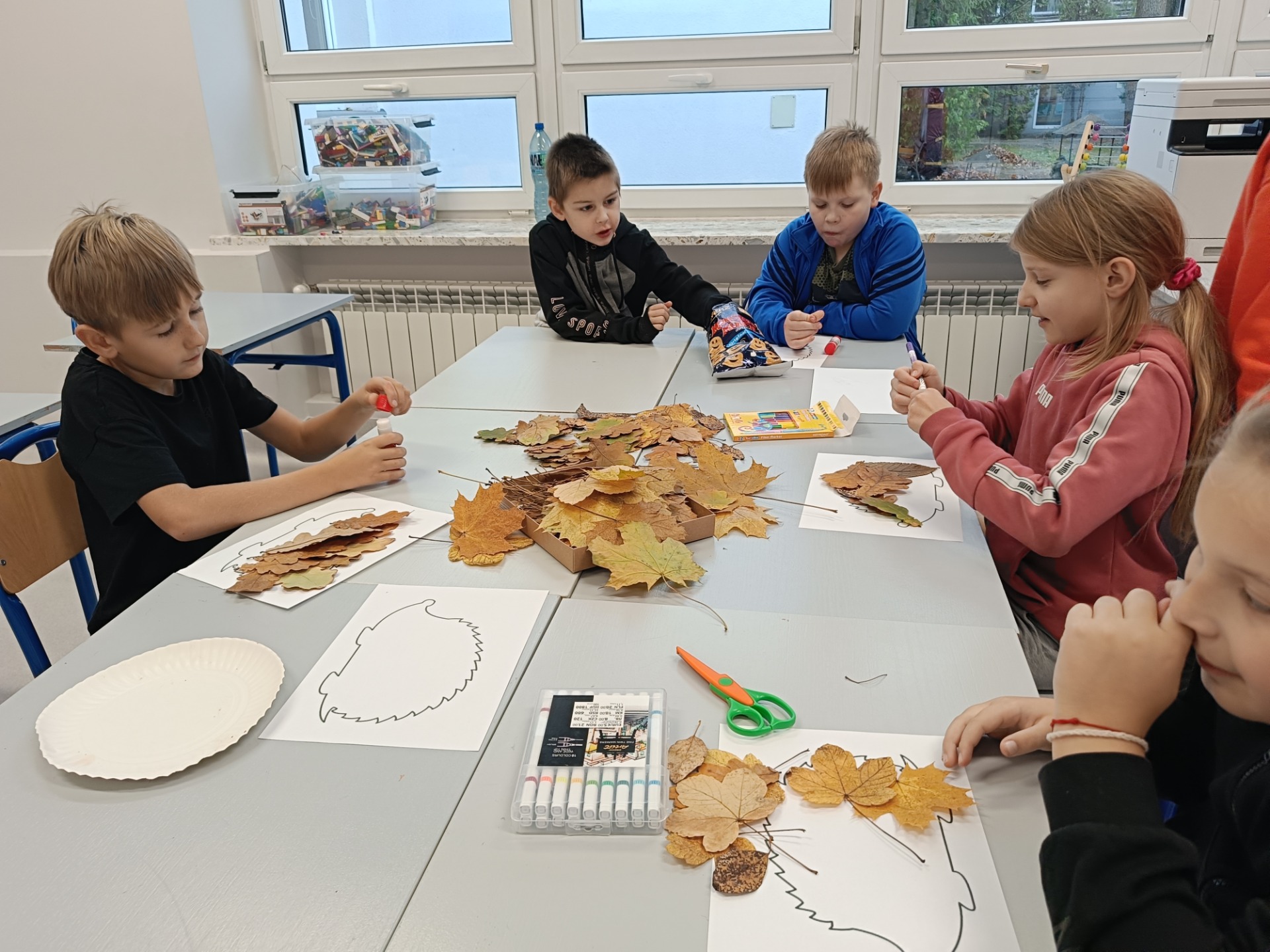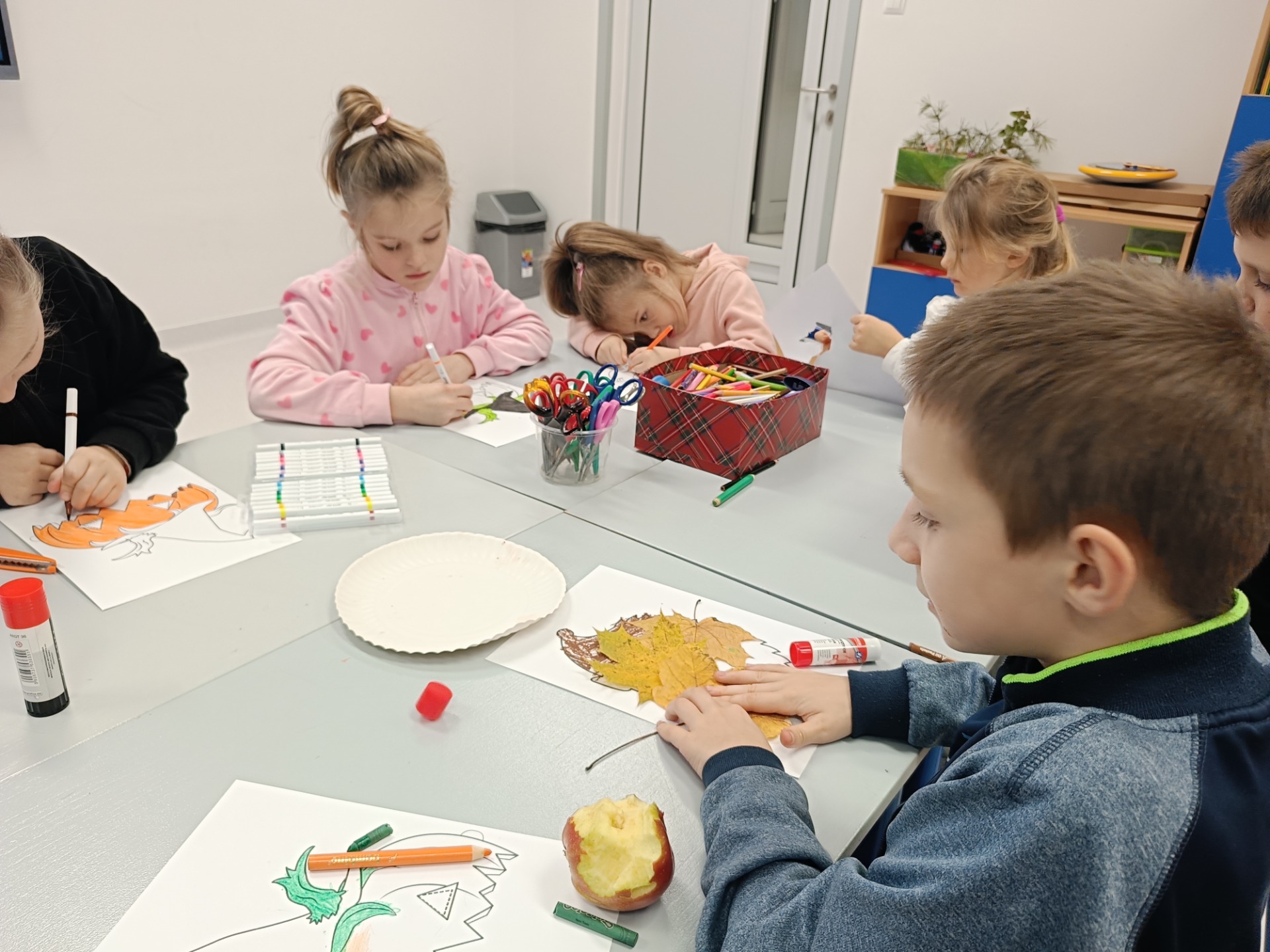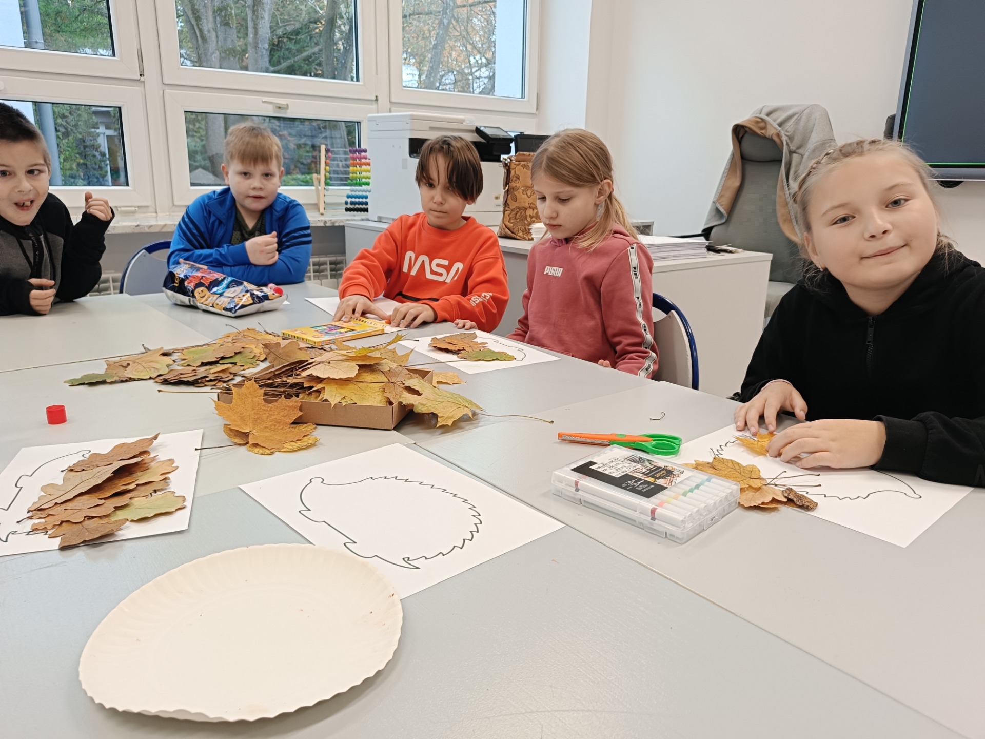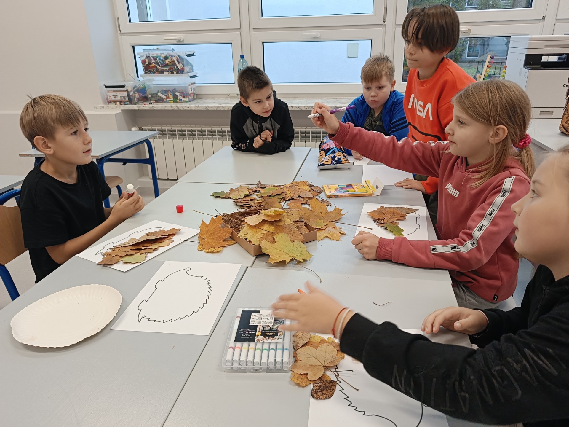 W naszej szkole jesień zagościła na dobre – nie tylko za oknami, ale i w salach lekcyjnych. Uczniowie z zapałem tworzyli różnorodne prace plastyczne inspirowane tą kolorową porą roku. Powstały między innymi piękne zdrapywanki, które po odsłonięciu ukazywały ukryte barwy jesieni. Nie zabrakło również prac z liśćmi, które dzieci zbierały podczas spacerów i wykorzystywały do tworzenia oryginalnych kompozycji. Zajęcia stały się okazją do rozwijania kreatywności, wyobraźni oraz umiejętności manualnych. W związku ze zbliżającym się Halloween, uczniowie przygotowali także maski dyniowe – jedne wesołe i kolorowe, inne nieco tajemnicze, ale wszystkie niezwykle pomysłowe. Wspólne tworzenie masek dostarczyło dzieciom wiele radości i wprowadziło w szkolne mury atmosferę jesiennej zabawy. Dzięki takim działaniom szkoła wypełniła się ciepłymi barwami, uśmiechem i twórczym duchem, a prace uczniów stały się prawdziwą ozdobą naszych sal lekcyjnych.