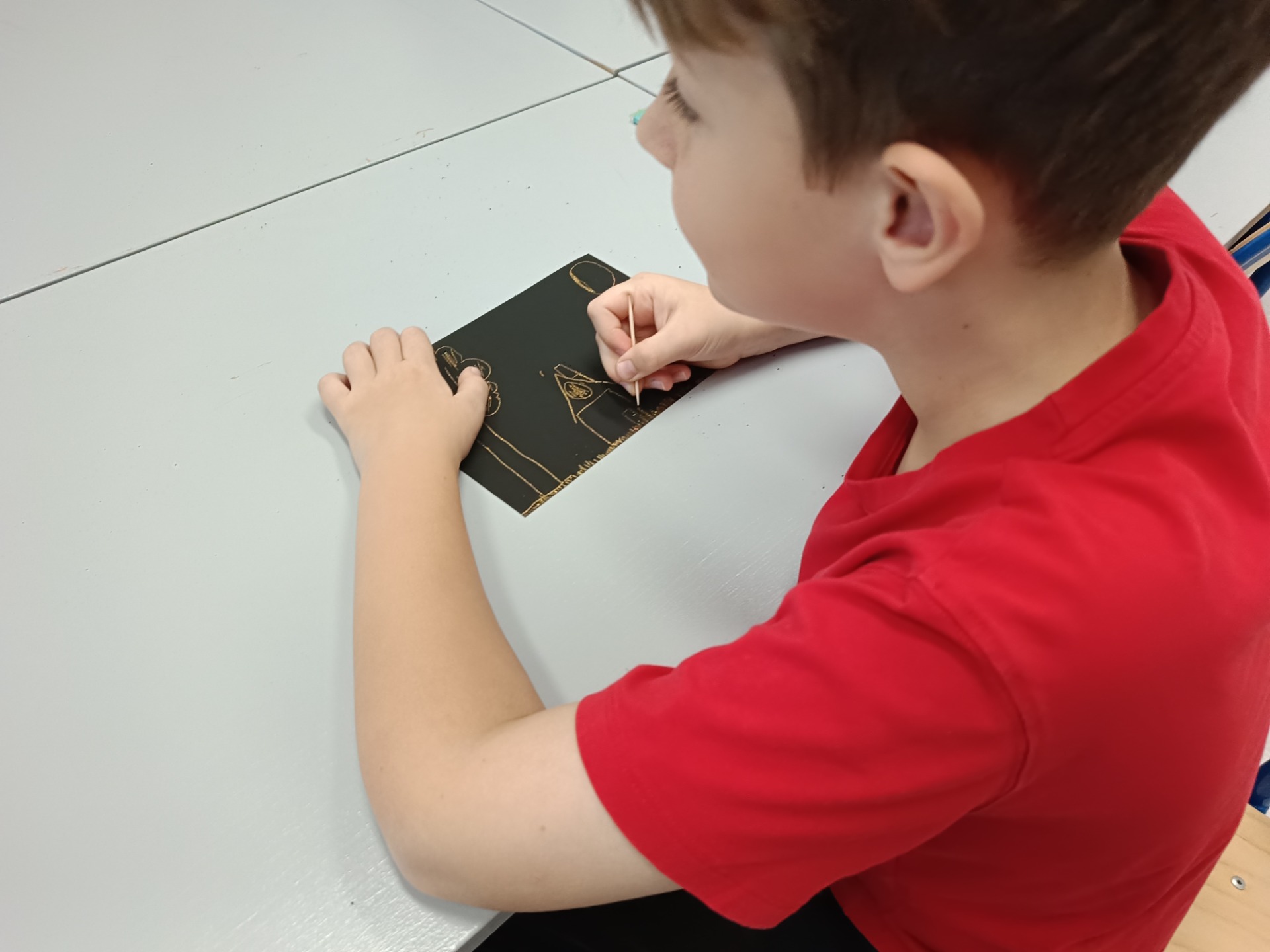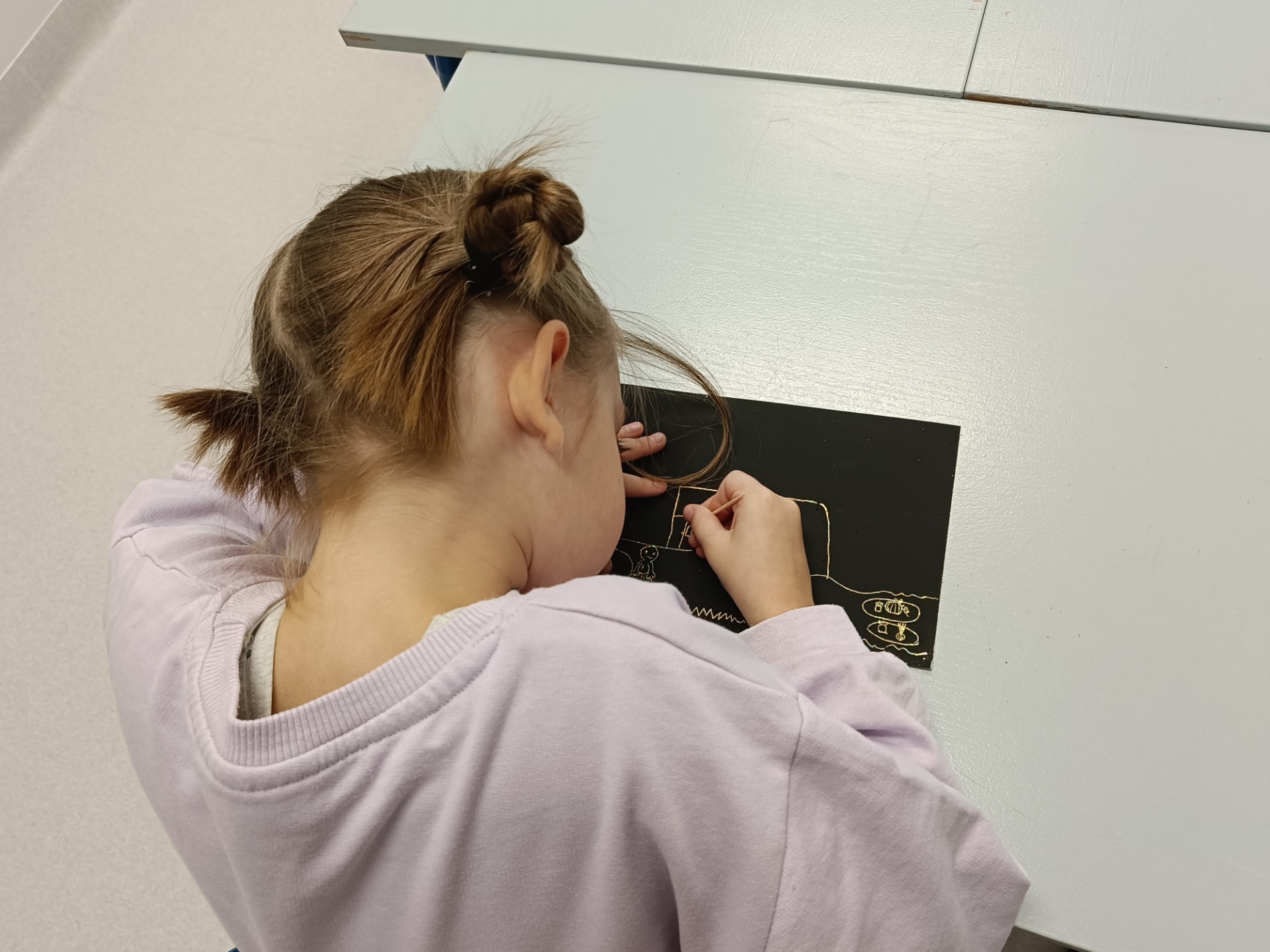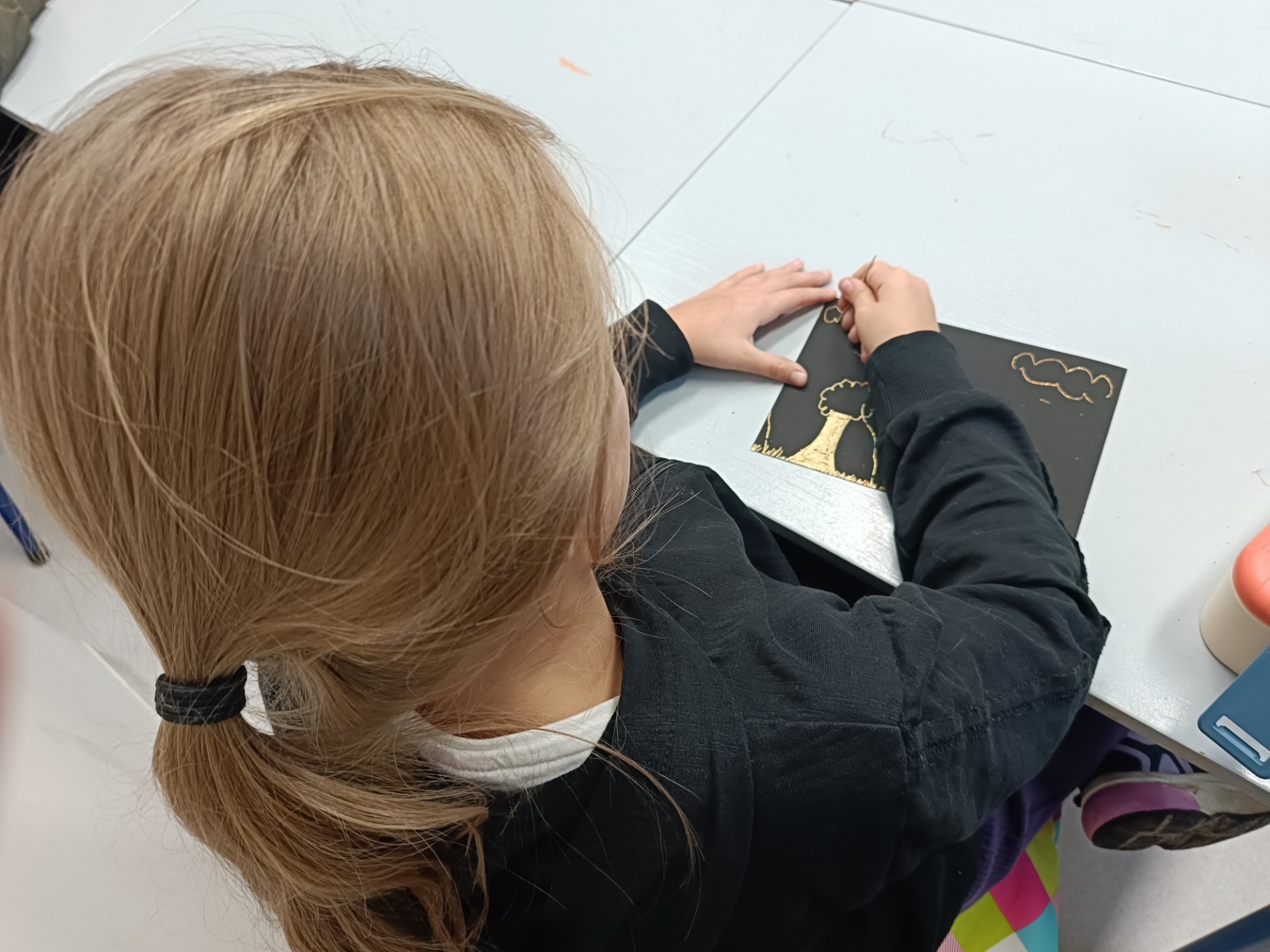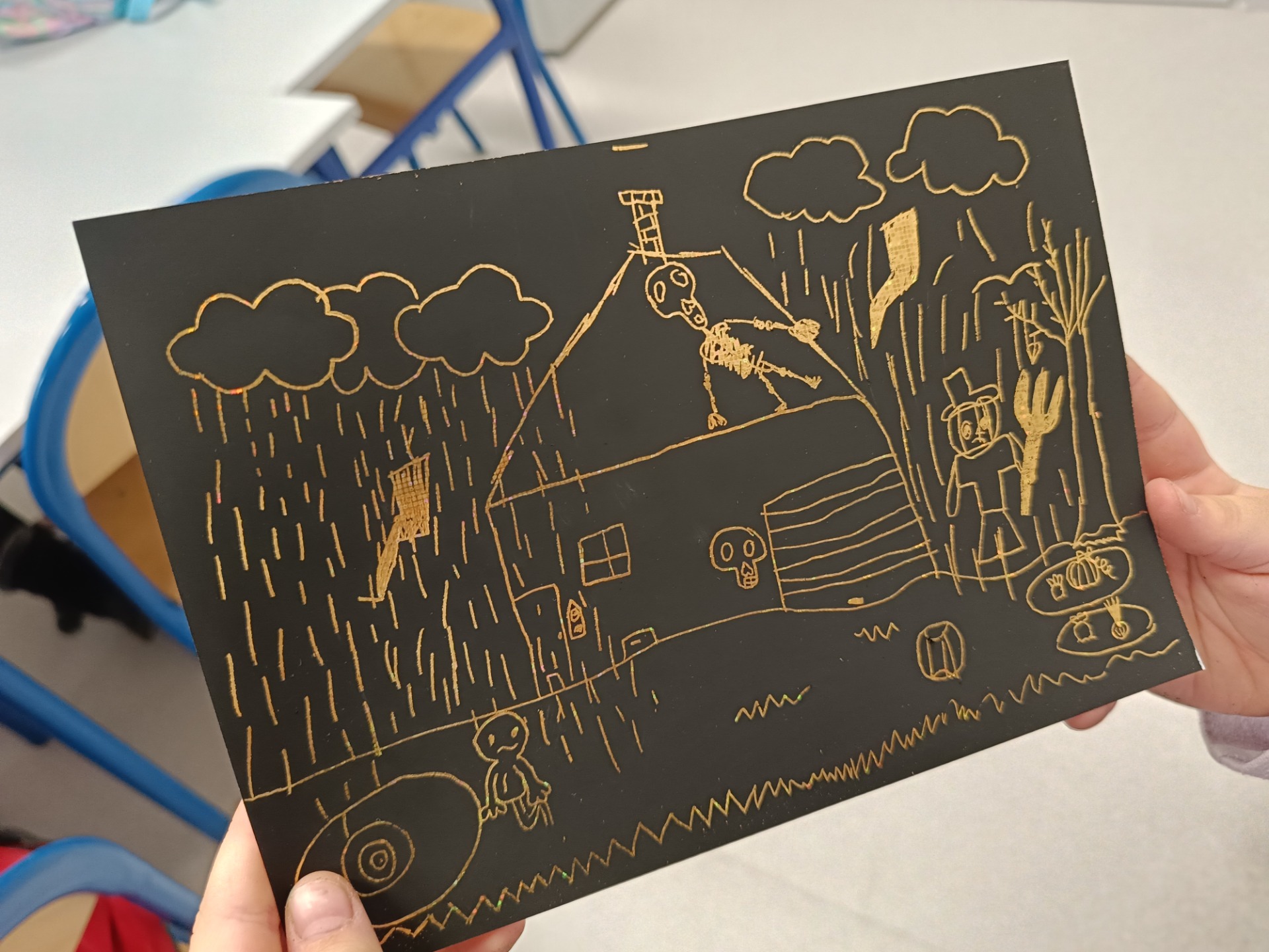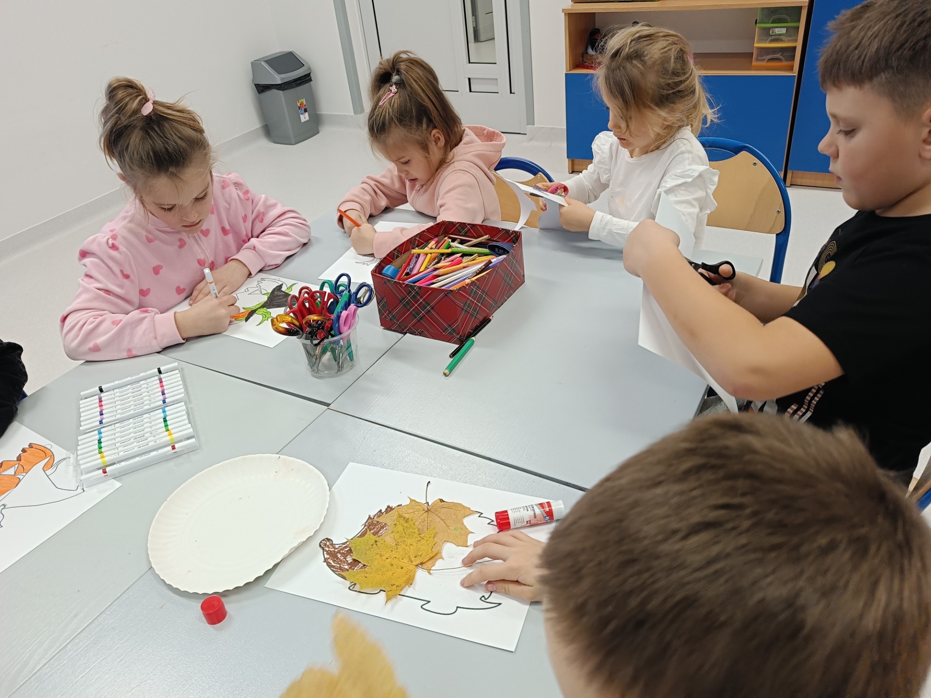 W naszej szkole jesień zagościła na dobre – nie tylko za oknami, ale i w salach lekcyjnych. Uczniowie z zapałem tworzyli różnorodne prace plastyczne inspirowane tą kolorową porą roku. Powstały między innymi piękne zdrapywanki, które po odsłonięciu ukazywały ukryte barwy jesieni. Nie zabrakło również prac z liśćmi, które dzieci zbierały podczas spacerów i wykorzystywały do tworzenia oryginalnych kompozycji. Zajęcia stały się okazją do rozwijania kreatywności, wyobraźni oraz umiejętności manualnych. W związku ze zbliżającym się Halloween, uczniowie przygotowali także maski dyniowe – jedne wesołe i kolorowe, inne nieco tajemnicze, ale wszystkie niezwykle pomysłowe. Wspólne tworzenie masek dostarczyło dzieciom wiele radości i wprowadziło w szkolne mury atmosferę jesiennej zabawy. Dzięki takim działaniom szkoła wypełniła się ciepłymi barwami, uśmiechem i twórczym duchem, a prace uczniów stały się prawdziwą ozdobą naszych sal lekcyjnych.